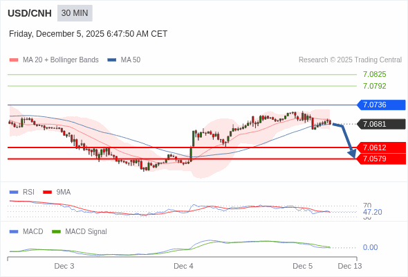 交易策略: 逐渐下跌,当 7.0736 阻碍上行,则 7.0579 为目标位。