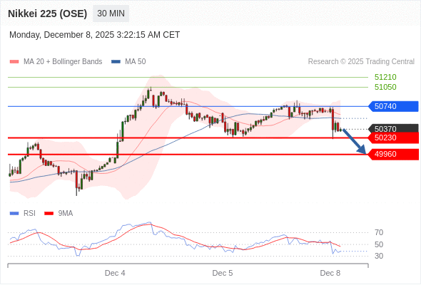 在 50740 之下,看跌,目标价位为 50230 ,然后为 49960 。