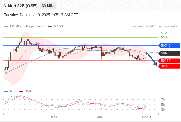 日经225股指期货 (OSE) 当日内: 短期关键阻力位在50740。