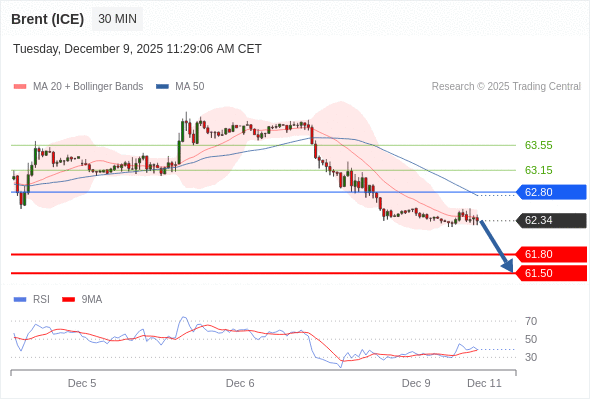 在 62.80 之下,看跌,目标价位为 61.80 ,然后为 61.50 。