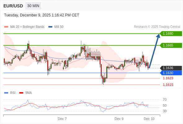 在 1.1630 之上,看涨,目标价位为 1.1665 ,然后为 1.1680 。