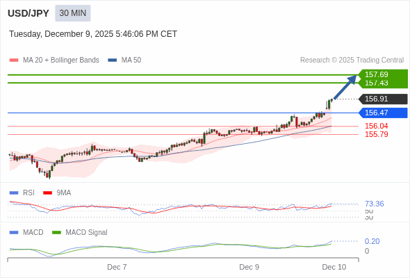 技术点评: RSI技术指标大于70。在这种情况下,说明有很强的上升趋势,或者意味着处在超买的状态下,可能会有向下的调整。我们将观察RSI技术指标是否出现背离现象。 MACD技术指标处在其信号线之上看多。 配置为正。 此外,价位高于其20天及50天移动平均线 ( 分别位于156.32 和156.06 )。 最后,价位突破其布林线通道上轨 (位于156.83。
