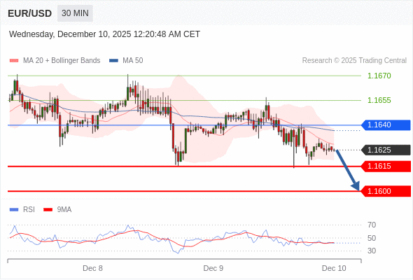 交易策略: 在 1.1640 之下,看跌,目标价位为 1.1615 ,然后为 1.1600 。