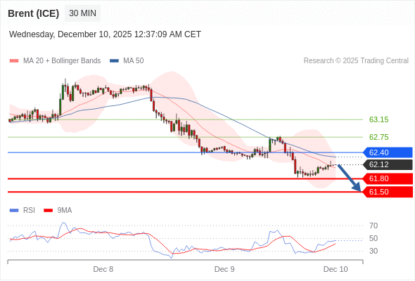 交易策略: 在 62.40 之下,看跌,目标价位为 61.80 ,然后为 61.50 。