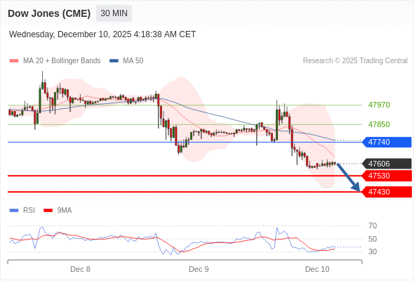 在 47740 之下,看跌,目标价位为 47530 ,然后为 47430 。