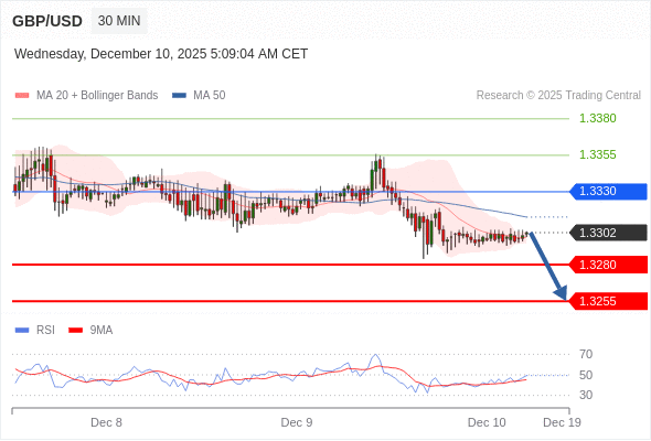 在 1.3330 之下,看跌,目标价位为 1.3280 ,然后为 1.3255 。