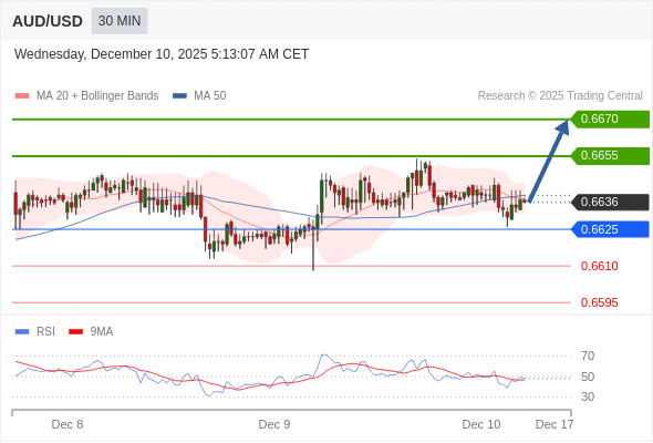 在 0.6625 之上,看涨,目标价位为 0.6655 ,然后为 0.6670 。