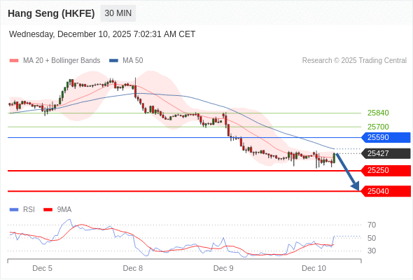 在 25590 之下,看跌,目标价位为 25250 ,然后为 25040 。