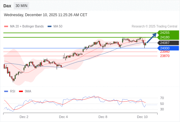 在 24000 之上,看涨,目标价位为 24180 ,然后为 24255 。