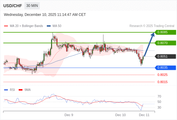 在 0.8035 之上,看涨,目标价位为 0.8070 ,然后为 0.8085 。
