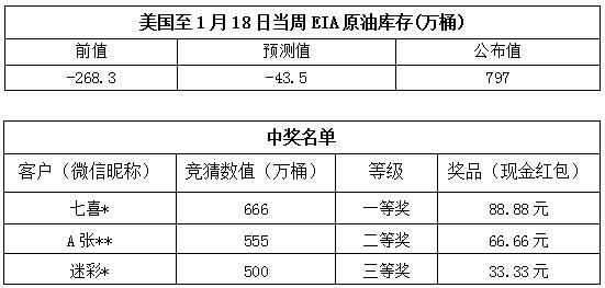 2019年1月第4次“EIA大竞猜”活动的中奖结果已出,获奖信息如下: