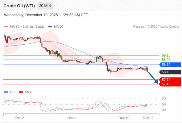 在 58.60 之下,看跌,目标价位为 57.70 ,然后为 57.45 。